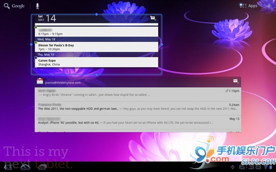 在上周进行的Google I/O大会上,蜂巢系统的最新版本Android 3.1正式发布了。 不久后,Verizon和摩托罗拉将发布面向Xoom的Android Honeycomb 3.1系统的更新,国外媒体已经提前拿到了这一全面改进后的版本,简单使用以后发现它确实改进不小,不但美观度得到了极大地提升,还改进了各种功能并提升了稳定性,下面就一起来欣赏下新系统的截图吧: