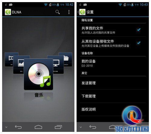 华为Ascend D2支持DLAN分享功能