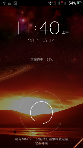 ▲解锁界面 滑动解锁界面采用最简单的圆形解锁图案,极大的减少了对主背景的影响。