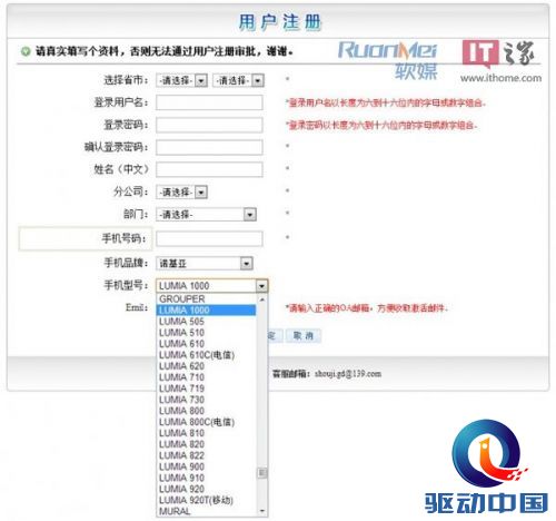 首先,Lumia1000只是一款存在传说中的机型,很可能是中移动员工录入错误;另一方面,列表中的Lumia719(曾经传闻中的中国电信定制机)、Lumia730、Lumia910等选项也是莫名其妙。