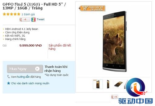 驱动中国消息,据外媒报道,oppo 去年发布的新旗舰手机OPPO Find 5,将在近期登陆越南市场,但oppo此次一反常态,将OPPO Find 5的16GB版本售价定在9999000越南盾,约合2972元,比国行要便宜一点。