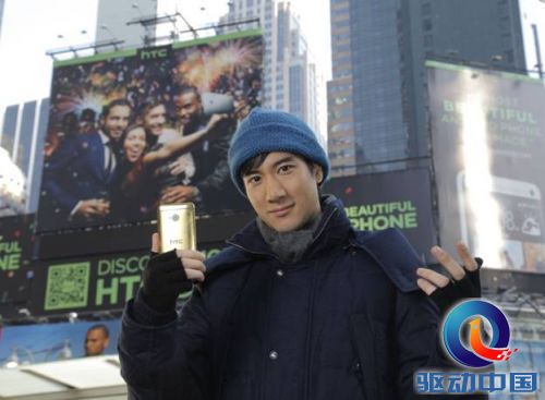 王力宏抢先体验纯金版HTC One,亮瞎时代广场路人眼!