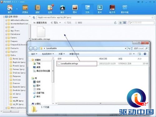 同样运行同步助手,切换到文件界面,点击侧边栏的应用(系统),复制该路径到输入框/Applications/Cydia.app/zh_CN.lproj,下载修复文件 (http://pan.baidu.com/s/1pJ785Ub)复制替换Localizable.strings,然后重启cydia即可。