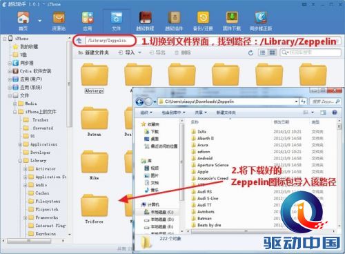 不过插件自带的运营商图标不是很多,这里共享一些运营商图标供大家下载(Zeppelin图标下载:http://pan.baidu.com/s/1xQb6m)。下载后运行电脑端的越狱助手(http://www.yueyuzhushou.com/)将文件解压导入iPhone上的文件/Library/Zeppelin,然后回到iPhone打开设置-Zeppelin-Theme即可更换图标。