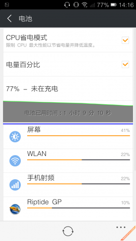 接下来是游戏测试环节,依旧选择测试常用的激流快艇。测试半小时后电量由89%降至77%,共消耗12%电量。