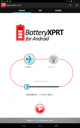 BatteryXPRT是一款用来专门测试硬件续航能力的应用,而且BatteryXPRT 2014的测试种类也更加贴近用户的日常使用习惯,例如视频播放、显示屏关闭待机、音频播放都在其测试范围内,相比于其它电池测试软件,BatteryXPRT 2014所得出的数据也将会更为准确。