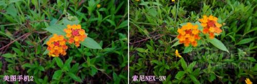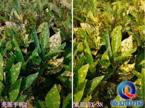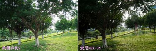 更让人惊讶的是,在偏黄的光线下,索尼微单的三张照片白平衡都出现了相对谝黄的问题,美图手机2则表现出了更准确的白平衡控制,在色彩方面对绿色的还原也更恰当,省去了专业相机”三分靠拍摄,七分靠后期”的烦恼。