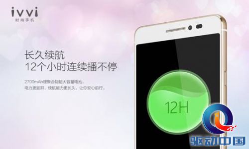 既然提供了乐视的视频内容生态,同时又是针对喜欢用手机看视频的用户推出的。那么无论是硬件还是参数上,都要满足用户长时间观看视频的体验,长久续航便是ivvi所专门推出的观看基础。2700mAh锂聚合物超大电池,为手机提供了更加持久的电力供应,可以支持用户连续12个小时的连续播放。