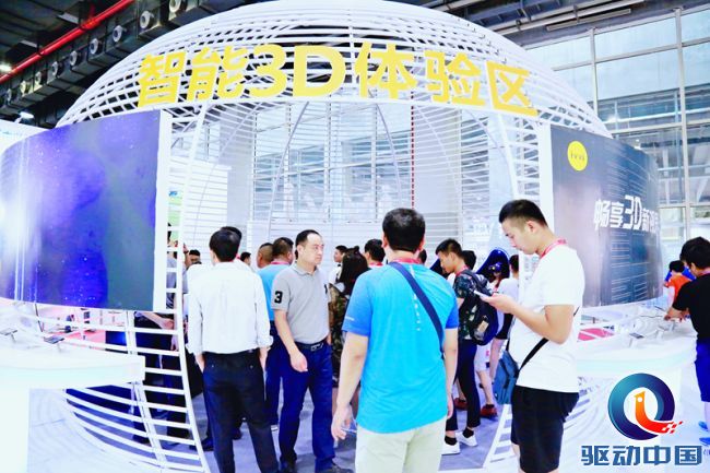 ivvi展厅以黄色为主色调进行布局,以黑色为辅进行衬托。多面支撑的展厅极具科技气息。与主体展厅相对应的是智能3D体验区,这个体验区是类似于鸟笼状的球形网状立体结构。所谓绿叶配红花,ivvi展厅展示的主体便是多款智能3D终端和体验设备,在ivvi展厅等候体验的参会者络绎不绝。