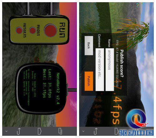 华为Ascend D2其他测试软件跑分成绩 最后是3D图形部分,其中测试图像相对简单的Nenamark 1得分为47.4fps、而稍微复杂的Nenamarrk 2仅为32fps,这个水平甚至低于自家荣耀四核版。综合以上测试,可以理解的是华为Ascend D2的1080P屏幕或许是影响跑分成绩的原因,当然也可能是并未针对这些测试软件进行优化,所以实际操作体验也是不能忽视的部分,下面就使用该机运行几款主流游戏来感受一下性能。