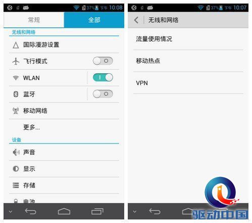 华为Ascend D2支持一键清理后台和快捷图标定制功能 系统设置部分,也能够看到一些新变化。首先分类变为常用和全部,更明了一些。该机可以支持3G、WLAN、蓝牙等传输功能,但并未内置流行的NFC。很多朋友会因为手机屏幕是所谓的“暖屏”还是“冷屏”而纠结(尤其是iPhone用户),而华为Ascend D2则可以自行设定屏幕色温,冷暖效果随意选择,这是该机在设置中比较独特且人性化的部分。另外,手机可以支持省电、普通和性能三种模式,用户可以根据使用需求进行选择。