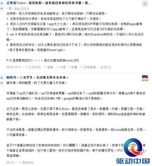 诺基亚Lumia 920是近期的热门产品,关注度升温很快。在国内社交网站”知乎网“知友对诺基亚Lumia 920的评价如何呢?