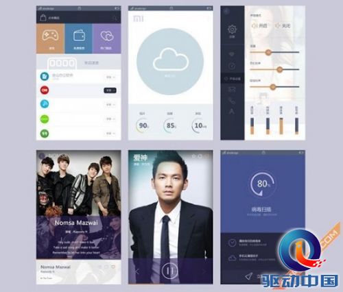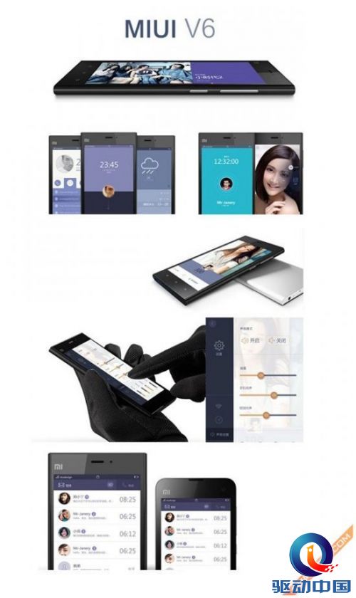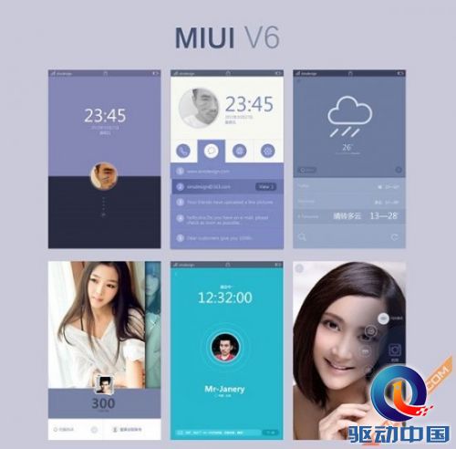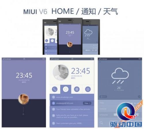 MIUI V6概念设计包含了通知、天气、音乐、商店、相册、通话、相机、播放器、相册等界面,共同的特点更加偏向简约和扁平化设计。