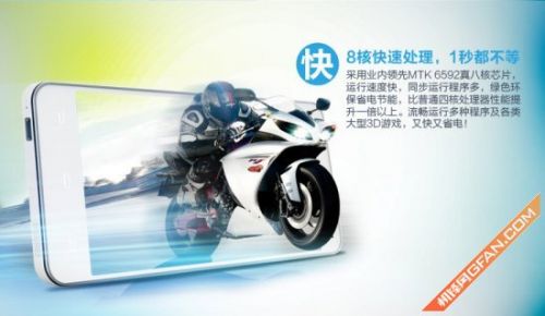 中兴青漾2搭载了联发科最新发布的真八核处理器MT6592,主频为1.7GHz,辅以1GB RAM以及8GB ROM,支持microSD卡扩展。