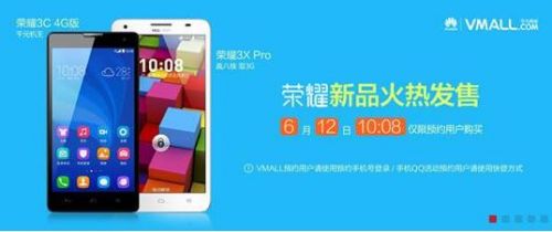 值得一提的是,荣耀3C4G版、荣耀3XPro目前都仅限于预约用户购买,非预约用户将无法下单。已经预约的用户,可提前登录华为商城或京东商城,以在6月12日10:08分准时下单。