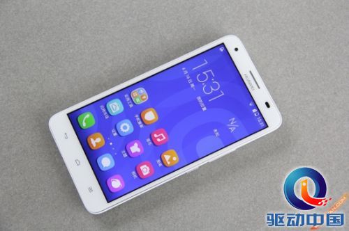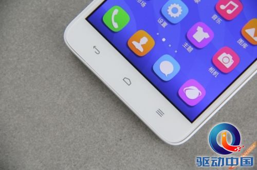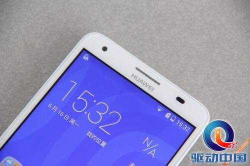 机身正面额头的部位与荣耀3X设计风格一样,从左至右分别是前置摄像头、听筒以及传感器。