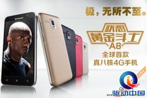 该机是联想继黄金斗士S8后又推出一款高性价比产品,也是首款真八核4G手机,由国际篮球巨星科比代言。黄金圣斗士A8支持FDD-LTE、TD-LTE、DCDC-HSPA+、TD-SCDMA、EDGE和GSM/GPRS的语音及数据通讯,移动4G版798元、联通4G版898元。