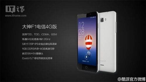 除酷派大神F2之外,酷派同时推出大神F1电信4G版以及大神F1青春版。