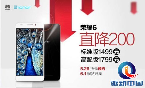 图:荣耀6直降200,标配版仅售1499元