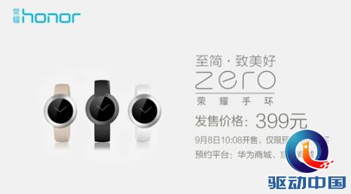 荣耀手环zero将于9月8日10:08在京东、华为商城正式开售,仅限拥有预约资格的用户购买。