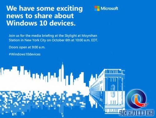 今日,微软正式向媒体发出邀请函,确定在会在10月6日于纽约举办发布会,而邀请函上写着扣人心弦的一句话:我们要分享一些关于Win 10设备的令人激动的消息。而根据预测,此次发布上微软很有可能发布最新的两款智能手机、Surface和Band手环。