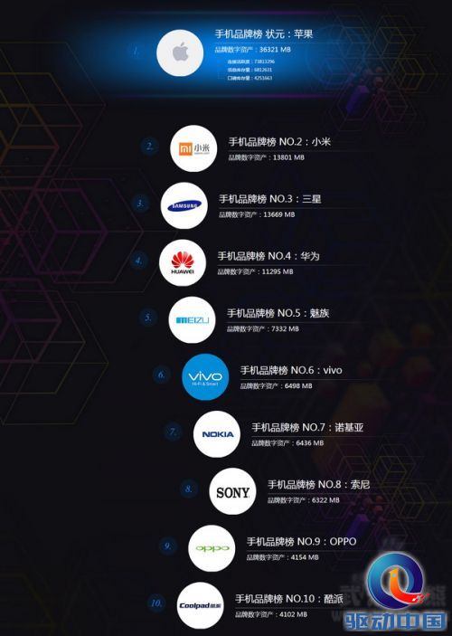 而这其中,非常值得注意的是vivo智能手机,在整个榜单中,该品牌成立不到4年,不但是最年轻的品牌,而且从其品牌属性来说,线下属性远远强于线上属性,也就是说vivo智能手机在“品牌数字资产”的积累中并不占优。所以vivo智能手机在2014年则仅仅排到第七位,在更远一些的2013年,更是完全没有上榜(据相关人士了解,约为19名左右)。