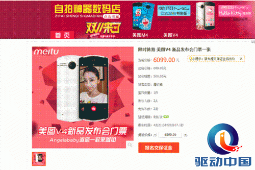 美图新机近期可谓万众瞩目,前脚刚有美图V4新机尚未发布便已在淘宝炒到了6999元的预售价,后脚这款号称史上最强自拍神器的美图V4手机的“11.17发布邀请函会门票”也声势浩大的被人在淘宝上竞价拍卖了,从起拍价699元竞价炒到了现在的6099元高价!着实让人大吃一惊啊!