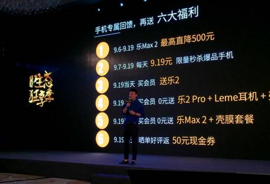 天猫商城9月6日至9月19日期间,免费限量领取乐2系列单品50元优惠券和乐Max2 (4GB+32GB版)直降500元。9月9日和9月10日还可以参与分享达成任务,享受红包翻倍。此外,9月19日用户更换919粉丝趴皮肤,抽取乐视蓝牙音箱及移动电源。