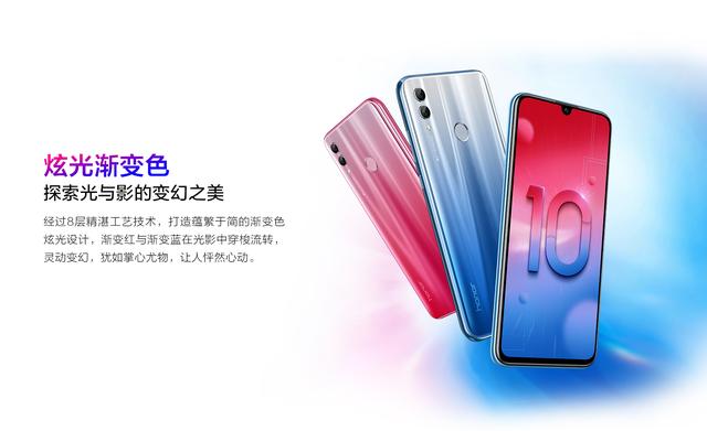 荣耀10青春版推出三个版本,其中4GB+64GB版本售价1399元,6GB+64GB版本售价1699元,6GB+128GB版本售价1899元,提供渐变红、渐变蓝、铃兰白、幻夜黑四种配色。
