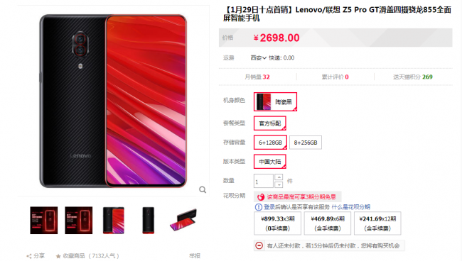 我们在电商平台看到联想Z5 Pro GT版已经有用户下单购买,这款全球首款骁龙855机型搭载2400万索尼AI四摄,6.39英寸95.06%屏占比,六位双螺旋滑轨全面屏设计,搭载第五代光电屏下指纹、杜比全景声音效,内置ZUI 10智慧系统,支持GPU Turbo硬件级游戏加速,起售价2698元!