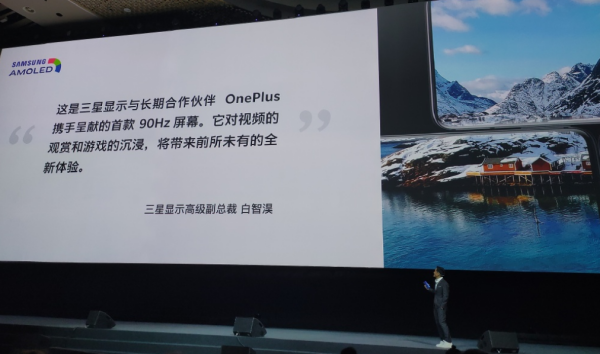 其实,一加与三星显示的沟通在初期并不顺利,因为三星在当时也觉得完全不可思议—— 2K+、90Hz刷新率的顶级屏幕?这可能是中国手机企业在屏幕定制方面提出的“最疯狂”需求。但两年之后的OnePlus 7 Pro发布会上,三星不仅为一加定制出了这块全球最顶级的AMOLED 流体屏,三星显示高级副总裁白智淏也对此评价称:“三星显示与长期合作伙伴一加携手呈现的首款90Hz屏幕,它对视频观赏和游戏的沉浸,将带来前所未有的体验”。最终,一加投入了近一亿人民币的研发费,与三星携手研发推出了一块专属于一加的、独一无二的显示屏。