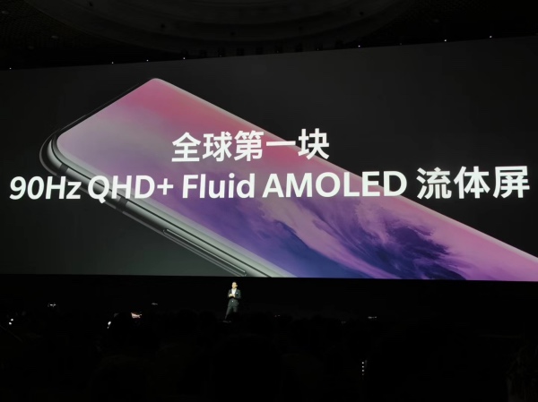 作为一加历史上首款以“Pro”命名的产品,OnePlus 7 Pro采用了全球首款2K+、90Hz刷新率的顶级OLED柔性曲面屏,屏占比高达93.22%,并通过了HDR10+认证。一加将其称之为“Fluid AMOLED 流体屏”。就连一向低调的刘作虎,在发布会上也掩饰不住兴奋:“90Hz流体屏有让人难以置信的屏幕表现,这不仅仅是一加手机上最好的一块屏幕,也是智能手机历史上最流畅的屏幕体验。”