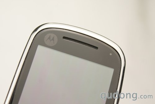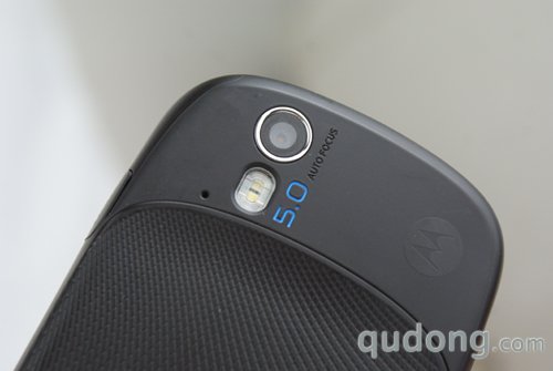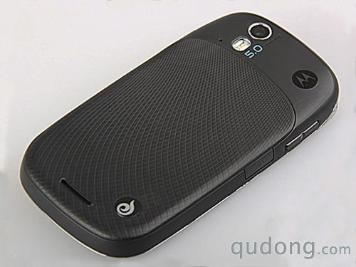 这款手机的身材比例是120×61.8×11.4mm,重量也达到了136g,这对于女性朋友来说可能就显得过于大了。手机上方主要是moto的logo、听筒、光线感应和距离感应器,光线感应器可以根据光线的明暗来自动调节手机屏幕的亮度,而距离感应器是为了让用户在通话时自动关闭手机屏幕以到达省电的目的,非常人性化的一个设计。