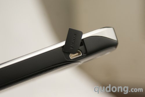 XT800的两侧设计非常简单,并没有过多的按键,左侧的两个按键是音量调节键和microUSB接口,右侧则为HDMI接口和相机键。值得要说的是HDMI接口可是一个好东西,虽然现在高清的摄像手机很多,但是像摩托罗拉XT800这样可以输出高清视频的还是真是头一回看到。