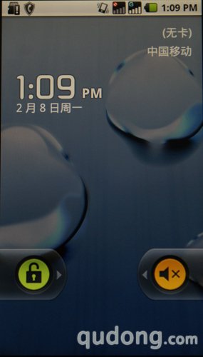 准确的说摩托罗拉 XT800搭载的是Android2.0.1的内核,这较Android2.0版本还是有一些改进的。比如手机的解锁界面就由横拉滑动解锁替换了以前的弧形滑动解锁,向左滑为解锁,向右滑为静音。尤其是静音功能在实际的生活中经常可以使用到。