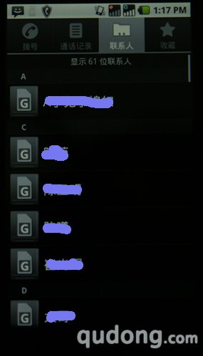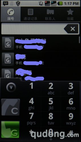 联系人界面的管理也是根据双卡双待来进行优化的,在每一个联系人的前面都清楚显示了对方所用的网络,同样在通话功能的拨号界面也清楚的标明了C网和G网的区分,用户可以方便的选择需要的网络进行拨打,同时XT800也应用上了丽音技术,在嘈杂的环境下如果进行相应的设置会收到不错的通话效果。