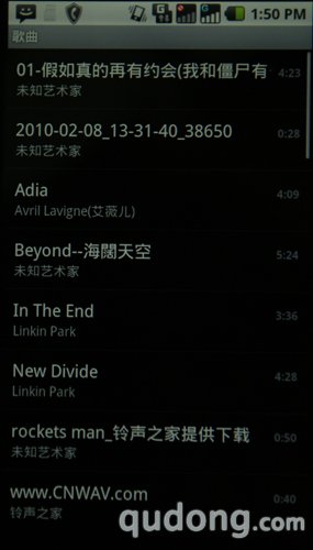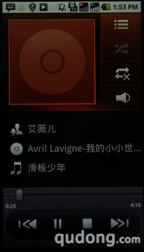 MOTO XT800在音乐播放界面上与其他Android手机基本相同,不过其支持音效设置,主要有立体声、家庭影院、现场和自定义等模式可选,由于耳机采用3.5mm普通接口,可以让用户更为方便的更换耳机,音乐的播放效果可以说是相当不错。另外要说的是,这款手机收听FM收音机是不需要耳机的。
