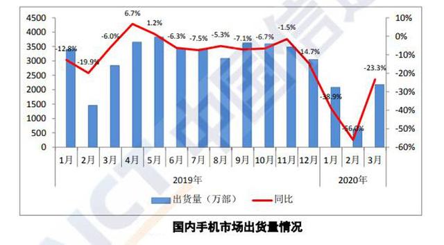 首先,我们来看看数据的由来,2020年3月份,国内手机市场出货量为2175.6万部,而2019年3月,国内手机市场出货量2837.3万部。因此,国内手机市场下降23.3%是与去年之间的比值。