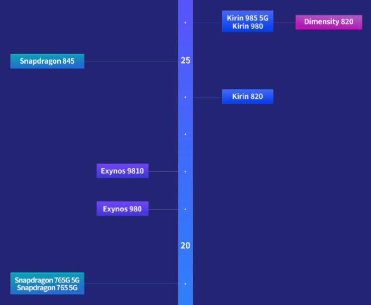 同期安兔兔官方也通过微博发布了最新的Android手机处理器天梯榜,天玑820超越麒麟820、骁龙765G等中端处理器,与麒麟985并列成为当前最强的中高端5G处理器 。