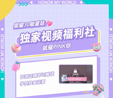 荣耀30系列品牌就在粉丝们口口相传之下,沉淀下荣耀圈层坚定的基石。【荣耀30能量站】杜绝粉丝或品牌单方面付出的窘境,成功建立起粉丝、学员、品牌之间的多赢局面。
