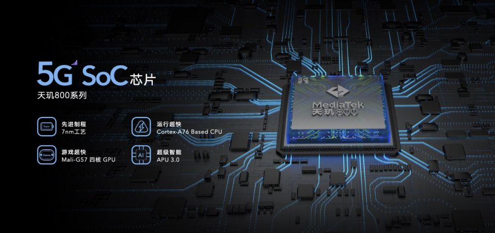 性能方面,荣耀Play4 采用的天玑800系列5G SoC,CPU为4个A76大核和4个A55小核架构,GPU则是Mali G76 MC4,并且拥有独立AI处理器APU3.0以及旗舰级图像信号处理器ISP,这些为荣耀Play带来了出色的响应速度、游戏体验、AI能力和拍摄效果。最高8GB的运行内存和128GB存储空间,让荣耀Play4的性能得到更好地发挥。