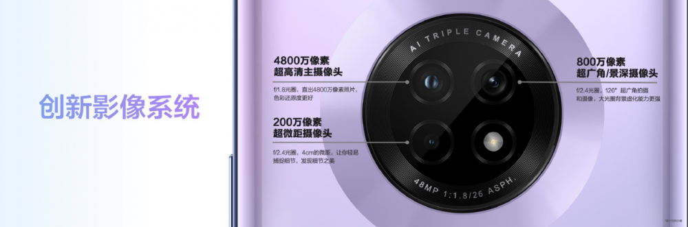 畅享20 Plus配置了高感光影像系统,由4800万像素主摄像头、800万像素超广角/景深摄像头,以及200万像素微距镜头组成,具备高清、超广角、大光圈虚化、微距拍摄功能。同时,畅享20 Plus后置镜头还支持EIS视频防抖,能够覆盖更多场景拍摄,精彩时刻随心拍。