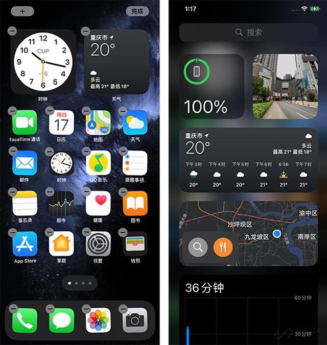 当时我看到这个功能的时候大呼:“这不就是抄的微软、安卓的嘛!”但体验之后发现并非如此,iOS 14的小组件有着安卓没有的优势,就是智能重叠以及智能补位。智能叠加就是一个位置可以添加多个小插件,支持上下翻阅查看内容,进一步减少占用空间;智能补位就是在你删除某个小插件后桌面会自动补齐图标,还是很有细节的。