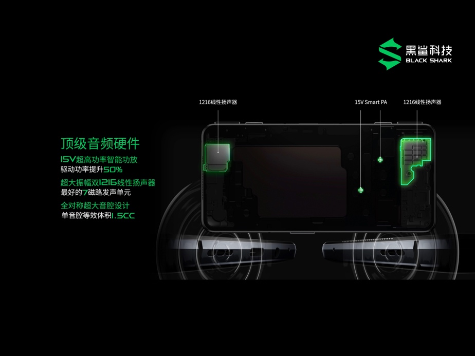 如果说打造完美的视觉体验是游戏手机的必修课,那么在DXOMARK音频榜上位列第一,就相当于一份“超纲”的答卷。为了打造极致的音频体验,黑鲨4 系列采用了侧面双对称扬声器+超大音腔设计,这种结构保证了声场的扩展性,形成极具空间感的立体声效,让热衷“吃鸡”手游的玩家更轻松的听声辨位,同时双侧布局又很好地规避了横握时遮挡的问题。