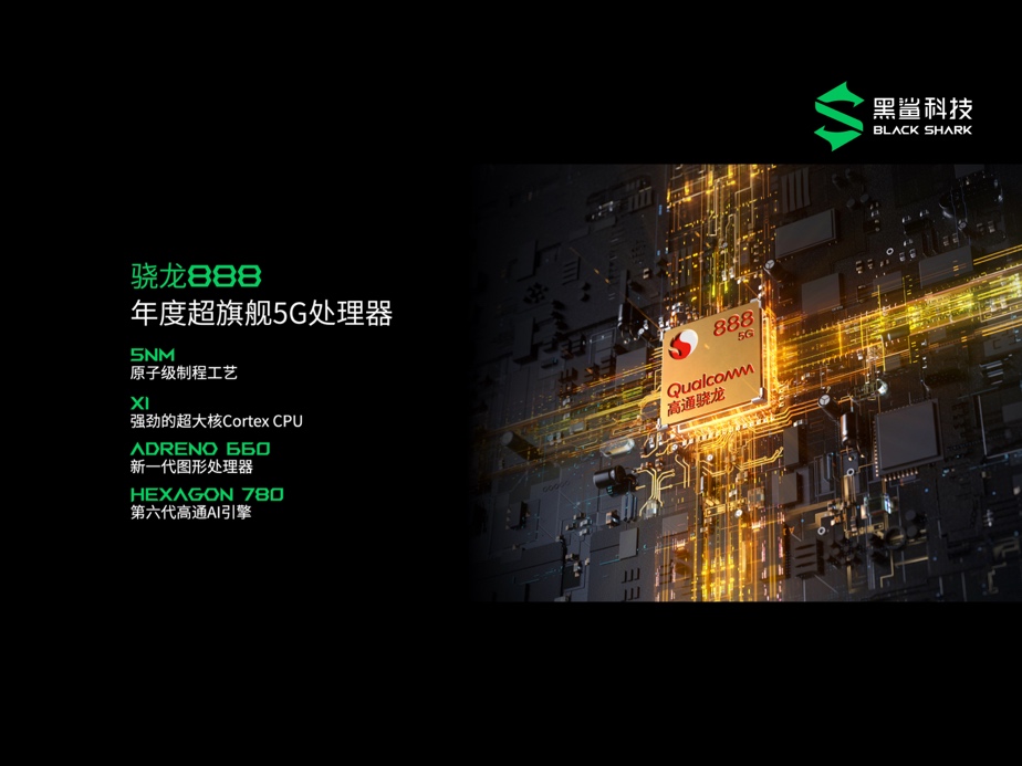 毫无疑问,极致的操控体验离不开强大的硬件性能作为后盾,黑鲨4和黑鲨4 Pro分别搭载了高通骁龙870和骁龙888,作为目前最顶级的移动芯片,骁龙888采用先进的5nm EUV制程工艺,拥有全新的Cortex X1超大核架构,具备性能强、功耗低的出色表现,芯片整体性能较前代提升高达25%,在游戏运行、5G、拍照、AI 等方面都有突破性的提升,为黑鲨4 Pro提供最为强悍的游戏性能表现。相比黑鲨4 Pro搭载的骁龙888芯片,黑鲨4搭载的骁龙870芯片,则很好的实现了性能与价格的平衡,7nm EUV制程工艺,3.2GHz主频的增强Kryo 585 CPU核心,并支持5G网络,就性能而言,骁龙870芯片足以满足大部分玩家的需求。