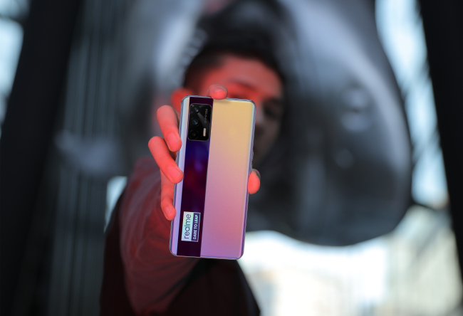 真我GT Neo无疑是一款极具设计感的潮玩旗舰,首次将realmeLogo与品牌Slogan“DEAR TO LEAP结合,打造全新品牌Box Logo设计,表达“敢越级”的品牌理念。