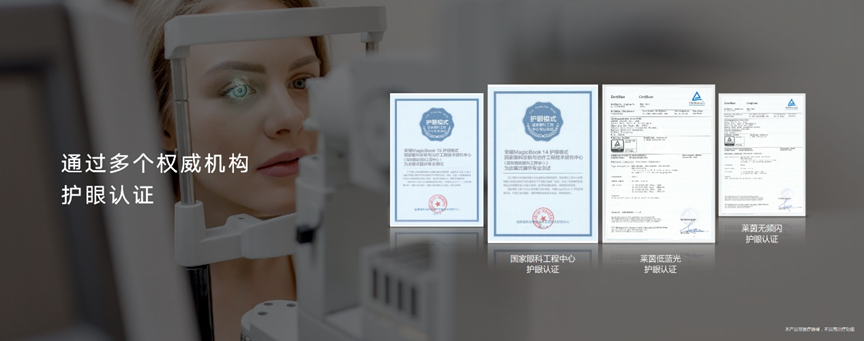 随着工作生活节奏的加快,大学生与上班族的用眼问题日益凸显。如何科学护眼,越来越为青年群体所关注。荣耀MagicBook 14/15锐龙版拥有两大护眼权威认证,可有效守护用眼健康。为了保证蓝光滤除的有效性,荣耀MagicBook 14/15锐龙版通过了德国莱茵低蓝光认证,可滤除有害蓝光,降低入眼辐射;其屏幕还支持DC调光,通过了德国莱茵无频闪认证,可使人眼感觉不到频闪,对眼睛更友好。