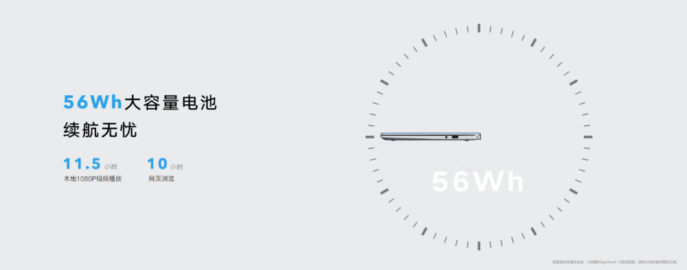 此外,荣耀MagicBook 14/15锐龙版还配有56Wh的大电池,最高可以支持11.5h的本地视频播放,轻松应对各种时刻,不让灵感轻易断电。 即便是长途旅行或出差也不用担心,荣耀MagicBook 14/15锐龙版采用65W可分离双头USB-C充电器,重量仅为160g(仅充电头),不仅外形小巧易携带,充电线也可单独作为数据线使用。