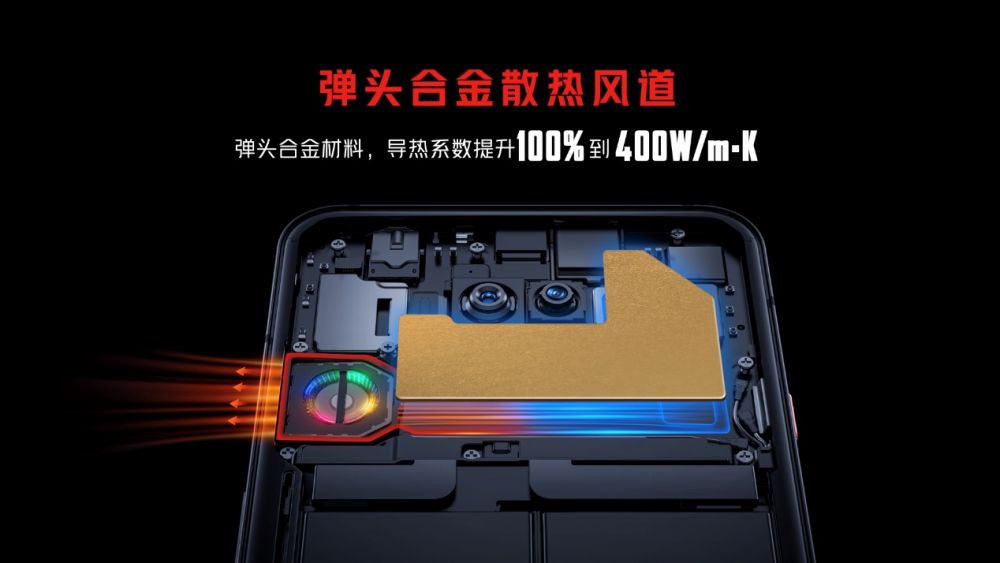 为了更好发挥出全新一代骁龙8移动平台的极限性能优势,红魔7系列在散热方案上也做到了极致。全新升级的ICE魔冷散热系统,由高速离心风扇、4124mm²超大VC散热板、航天级散热材料、超柔高导热稀土等组成9层散热结构,打造全行业首款散热材料面积高达41279mm²的游戏手机。其中,超柔高导热稀土配合转速高达20000转/每分钟的主动散热风扇将热量带走,核心热源温度同比上一代,直降3℃!航天级相变材料石墨烯+正二十一烷更是将导热系数提升400倍,配合金属材质的峡谷风道及新增背部45°角开孔形成双进风口,换气效率大幅提升,最高温度下降2.4℃!成就了目前业界最精密、最强大散热方案。