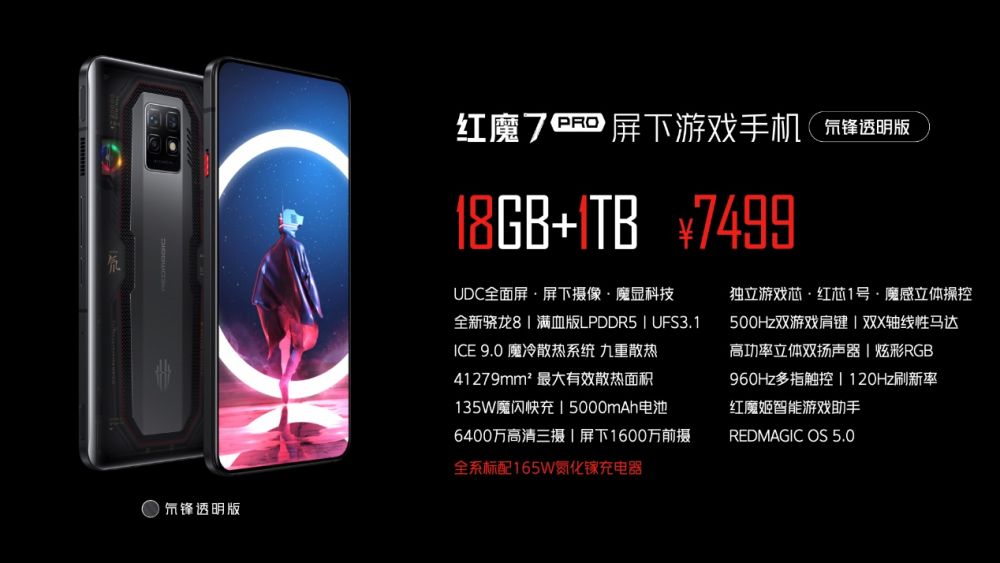 红魔以打造专业游戏装备为使命带来的全新旗舰红魔7系列,以四大行业首发姿态在性能、散热、屏幕、快充和系统功能等层面全面蜕变提升,为玩家带来2022年游戏旗舰巅峰形态!本次红魔7系列外观上延续了标志性硬核机甲元素,带来了暗夜骑士、赛博霓虹、氘锋透明三款配色。广受玩家好评的氘锋透明版再进化,经历27道工艺打磨,透明区域大幅增加,有实力就敢秀的游戏电竞自信态度跃然其上。